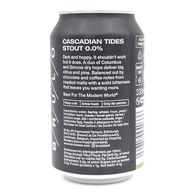 Plonge dans les eaux profondes de la Cascadian Tides Stout 0.0% de BRULO, une stout sans alcool qui bouscule les codes. Avec ses houblons Columbus et Simcoe, elle joue un duo inattendu d’agrumes et de pin, donnant un twist moderne à la stout classique. Les malts torréfiés apportent cette touche réconfortante de chocolat noir et de café, tandis qu’une legère amertume parfaitement dosée vient équilibrer le tout.